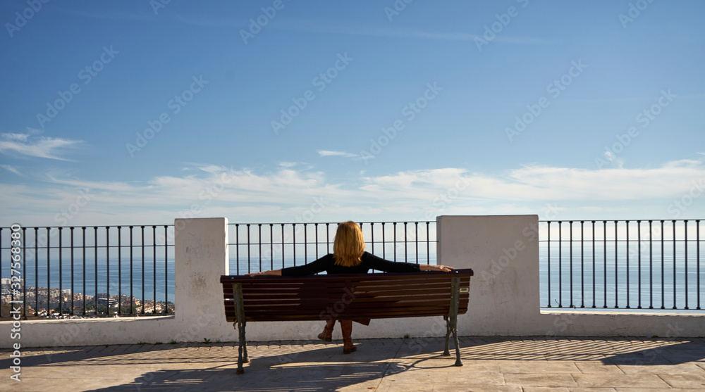 Obraz na plátně photo shoot blonde woman contemplating the sea