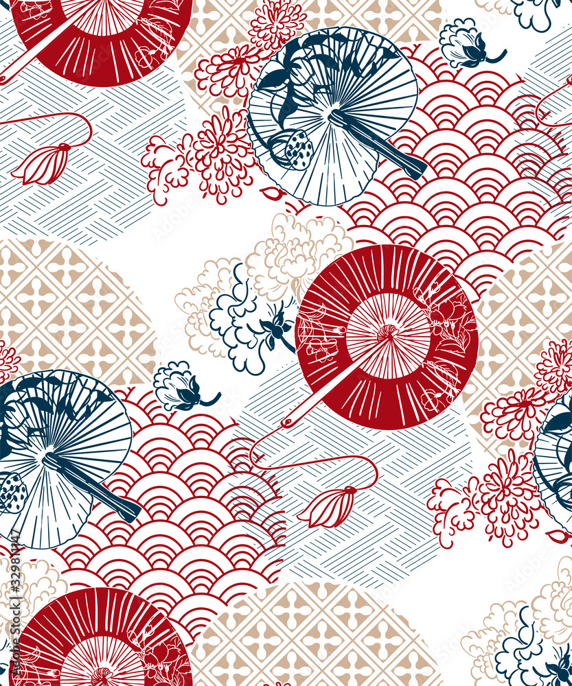 Obraz na plátně red blue fans flower japanese chinese vector design pattern