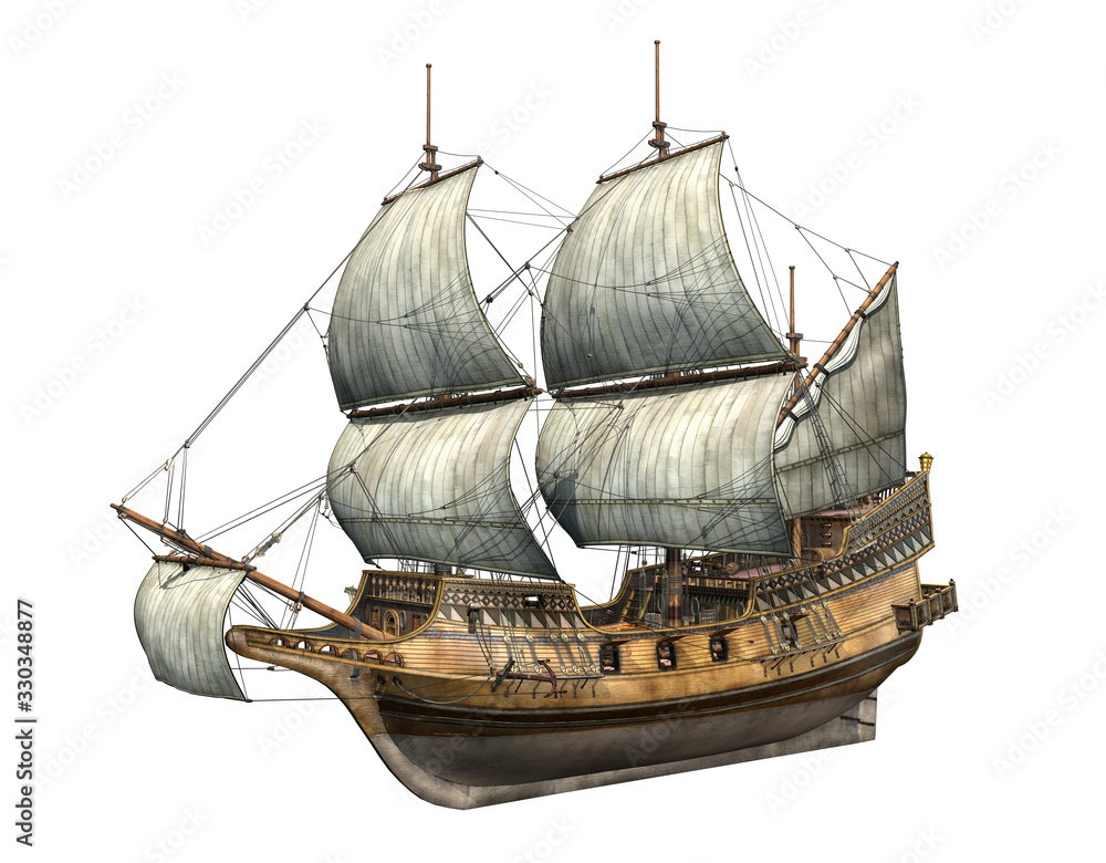 Obraz na plátně Golden Hind galleon. 3d illustration.