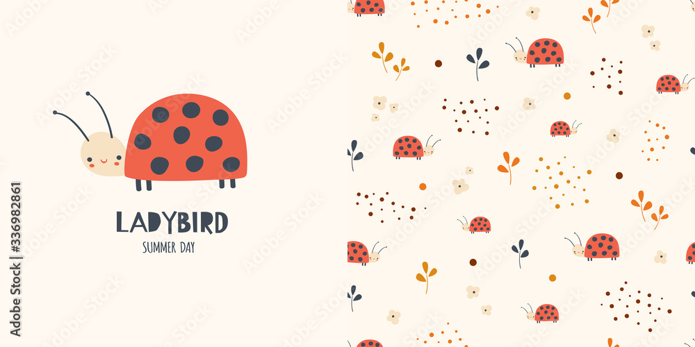 Obraz na plátně Ladybirds. Seamless pattern and surface design for kids