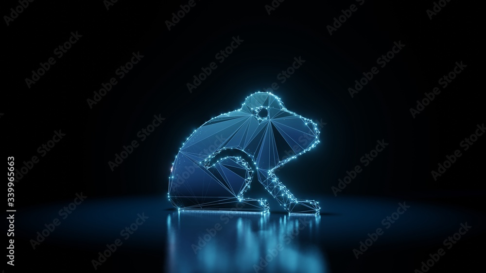 Obraz na plátně 3d rendering wireframe neon glowing symbol of frog on black background with refl