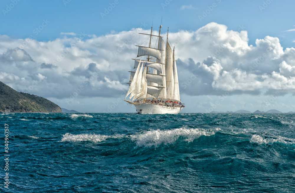Obraz na plátně Sailing ship at sea under sails. Yachting. Cruise. Travel