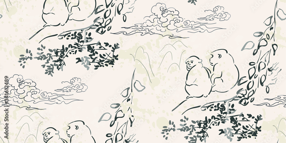 Obraz na plátně monkey forest vector japanese chinese nature ink illustration engraved sketch tr