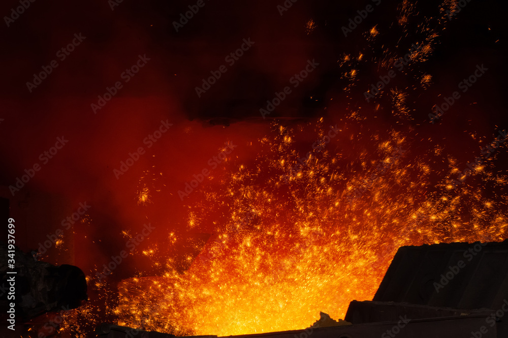 Obraz na plátně production of pig iron from a blast furnace in a foundry.