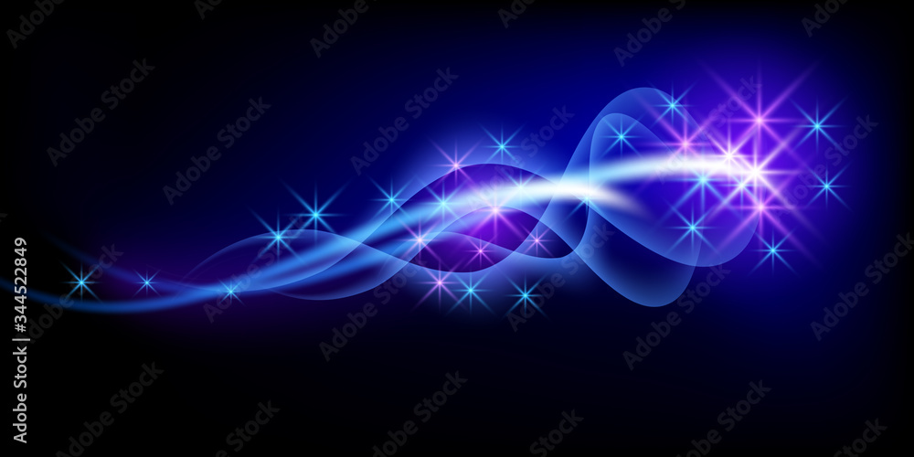 Obraz na plátně Sparkle fantastic stars flying in outer space in the blue night sky with shiny neon tail and blazing trail