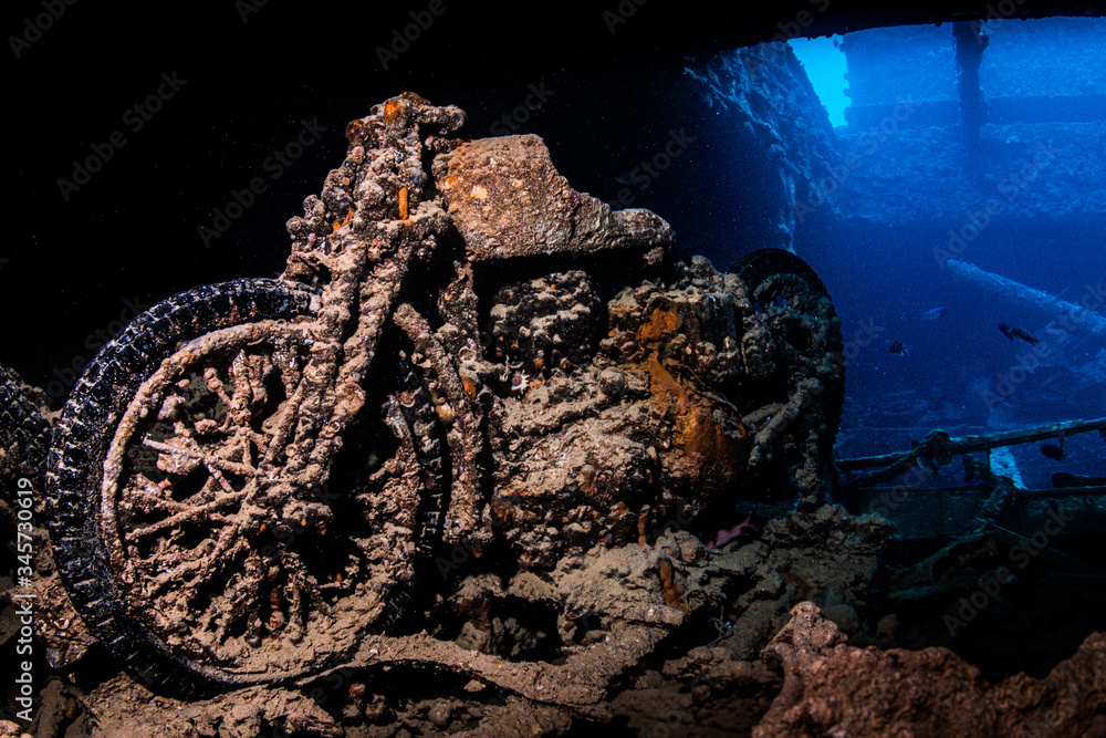 Obraz na plátně Motorbike on Thistlegorm wreck
