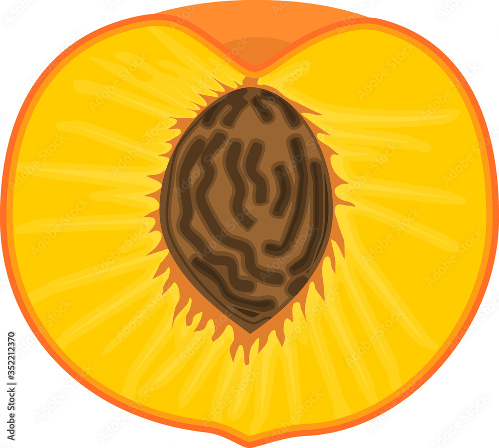 Obraz na plátně Ripe peach in longitudinal section isolated on white background