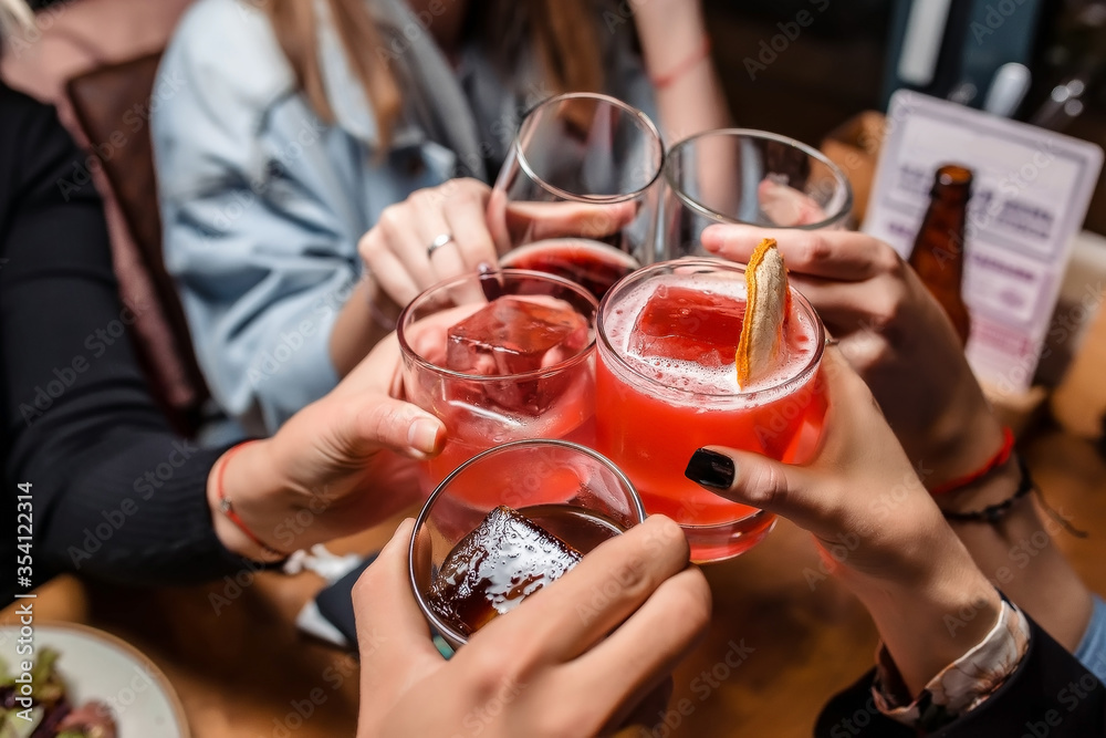 Obraz na plátně The Friends are toasting with their drinks in hand during a party