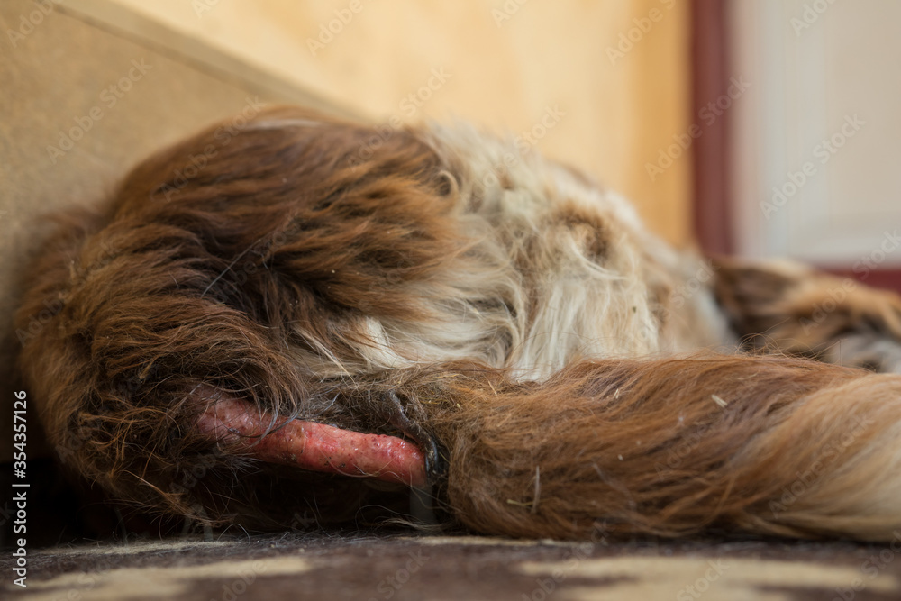 Obraz na plátně Dermatitis disease at the dog tail veterinary treatment