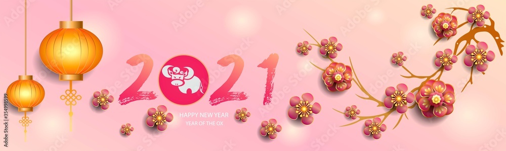 Obraz na plátně Happy new year 2021 / Chinese new year / Year of the ox / Zodiac sign for greeti