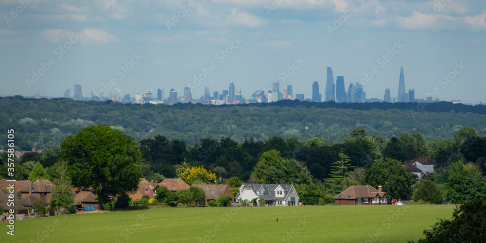 Obraz na plátně UK- City of London on the horizon with attractive English rural houses in the fo
