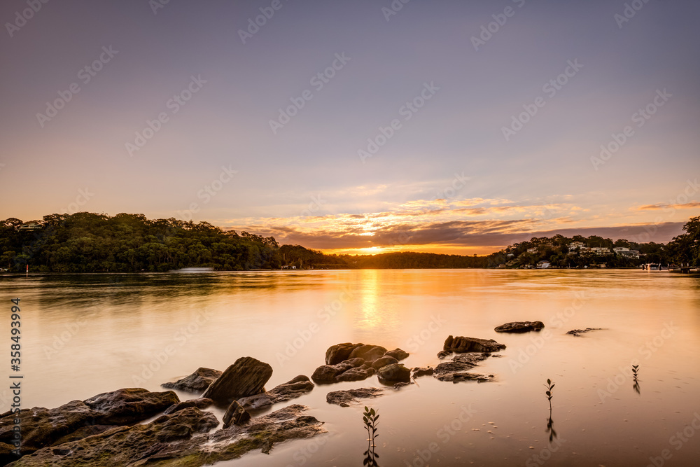 Obraz na plátně Sunset Scape of Georges River and Illawong Village