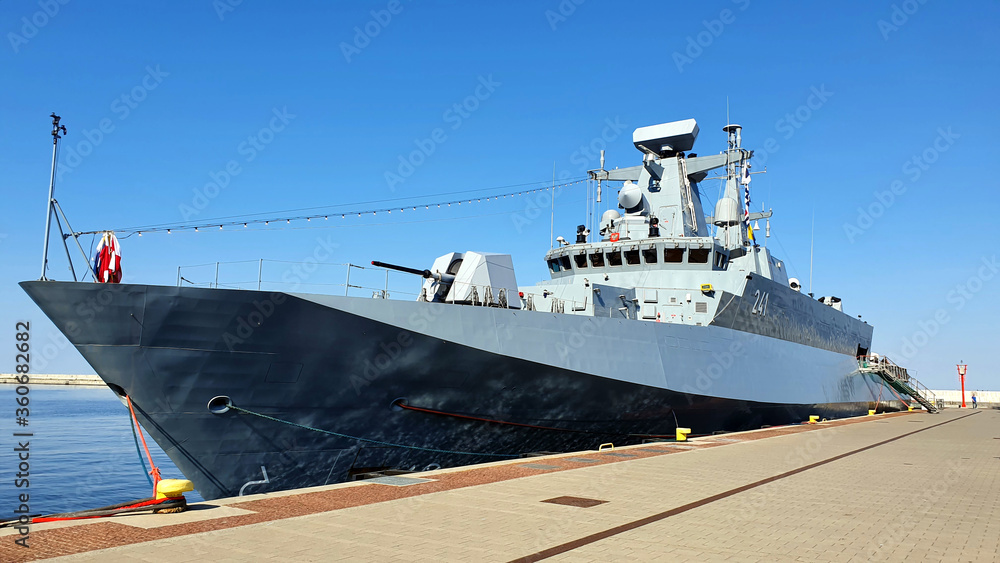 Obraz na plátně Polish patrol ship ORP Ślązak moored at the quay in the port of Gdynia, Poland