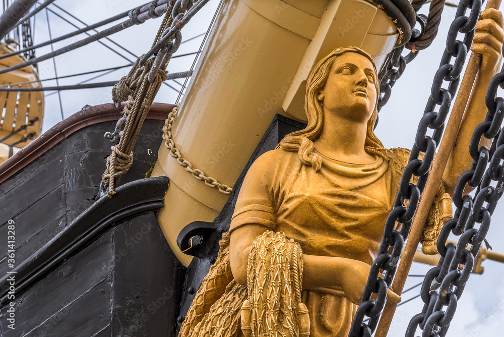 Obraz na plátně Golden figurehead in the bow of the frigate Jylland