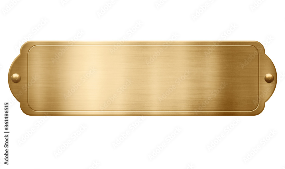 Obraz na plátně Gold metal plate with place for text isolated on white background