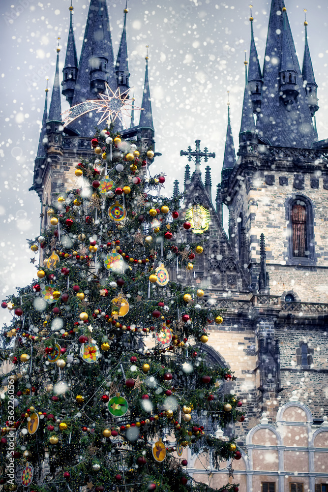Obraz na plátně Magical Christmas tree at the Old square in Prague