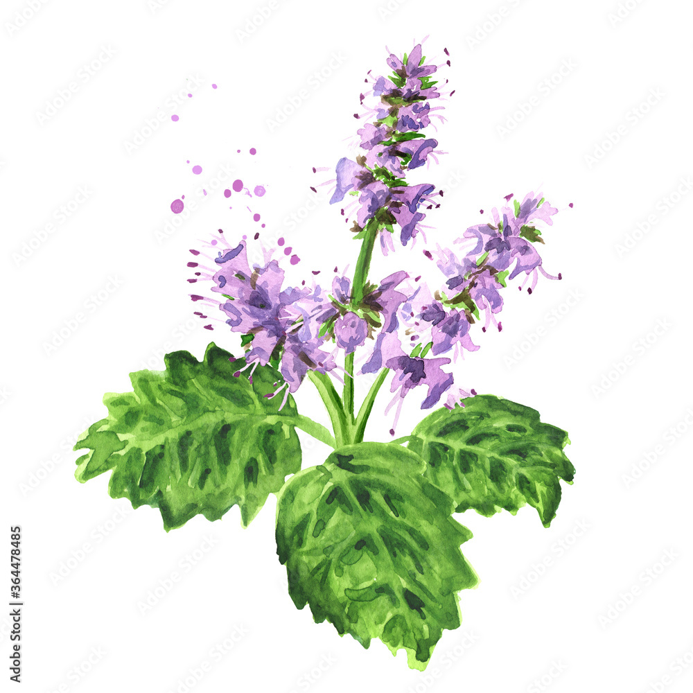 Obraz na plátně Plant patchouli or Pogostemon cablini branch with flowers and leaves, Hand drawn