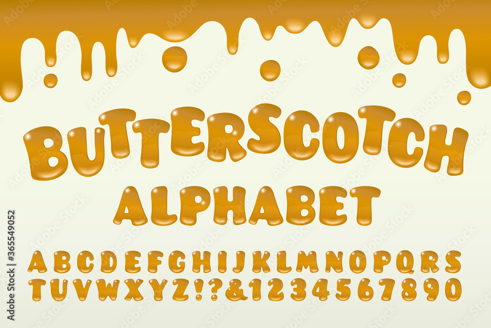 Obraz na plátně A Butterscotch Syrup Styled Alphabet with Gooey Melted Drips and Rounded Letter
