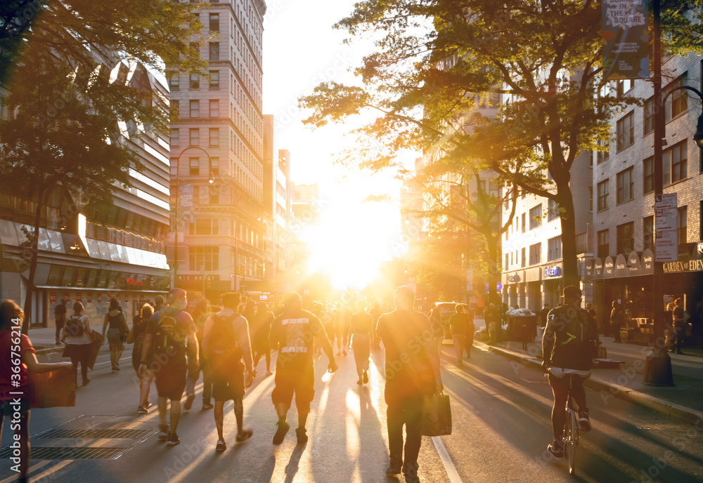 Obraz na plátně New York City, June 2020: People march into the sunset at a peaceful Black Lives Matter protest on 14th Street near Union Square in Manhattan