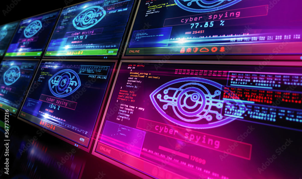 Obraz na plátně Cyber spying hacking and supervise eye symbol on screen illustration
