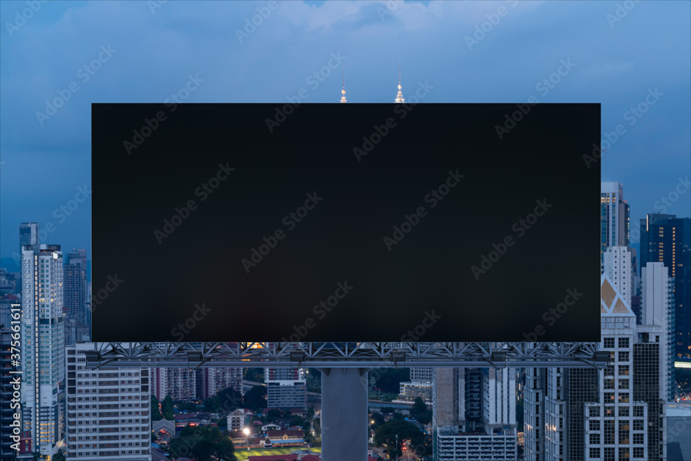 Obraz na plátně Blank black road billboard with Kuala Lumpur cityscape background at night time