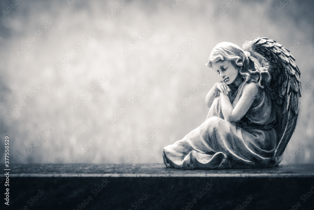 Obraz na plátně Angel figure sitting on an old headstone in a cemetery