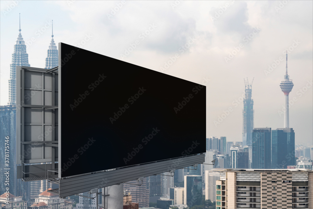 Obraz na plátně Blank black road billboard with Kuala Lumpur cityscape background at day time