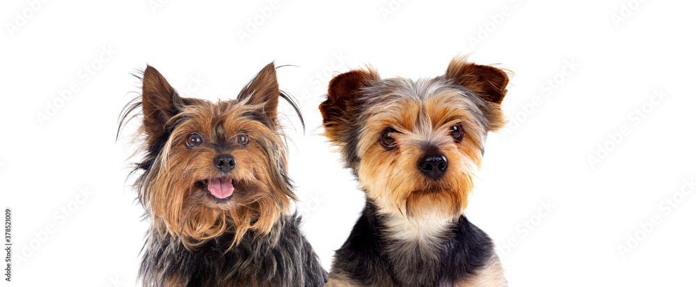 Obraz na plátně Two cute small dogs with long and short hair