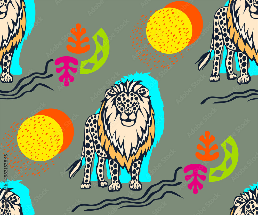 Obraz na plátně Vector background hand drawn exotic wild cat lion