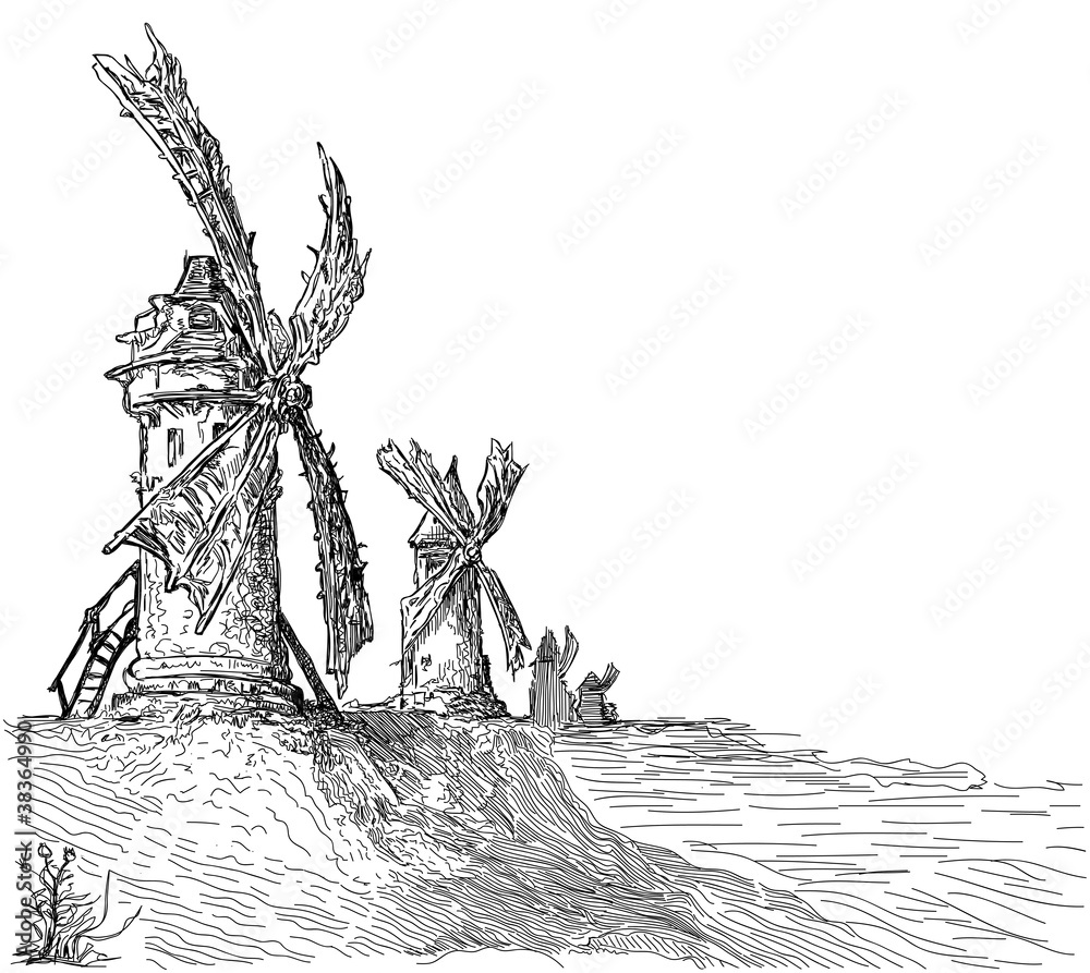 Obraz na plátně Mills on the hill - a vector drawing