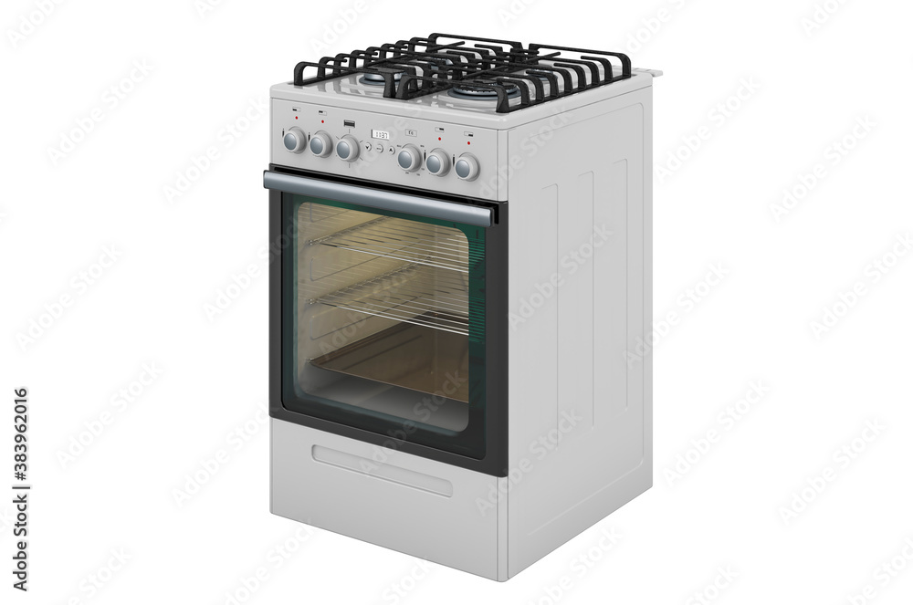 Obraz na plátně Gas range with oven and 4 burners, side view. 3D rendering