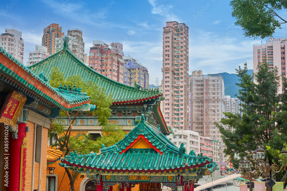 Obraz na plátně Hong kong cityscape with old culture temple and building background