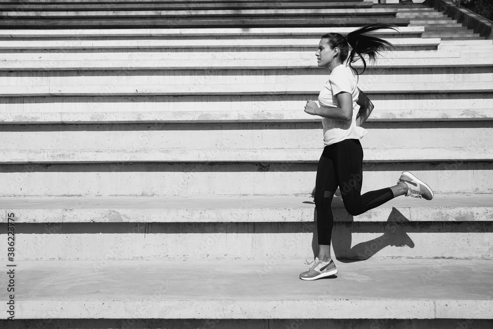 Obraz na plátně Strong fitness woman doing morning run on fresh air