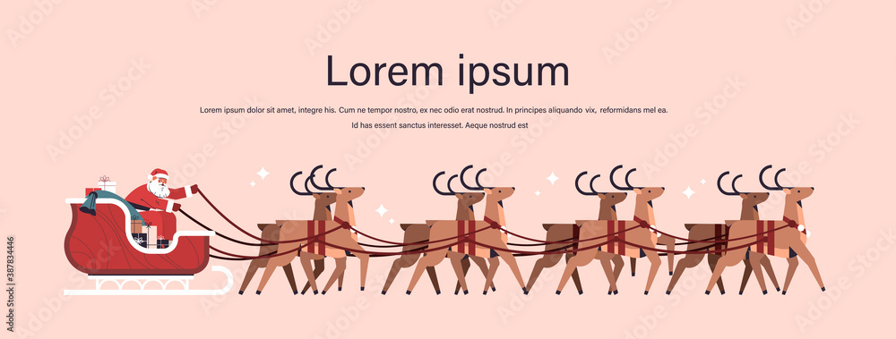 Obraz na plátně santa riding sledge with reindeers happy new year and merry christmas banner hol