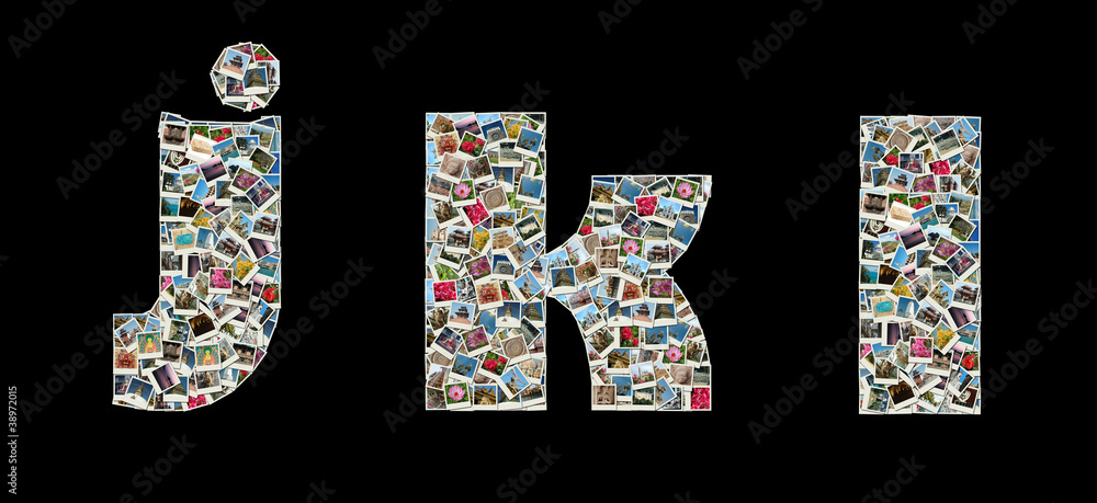 Obraz na plátně J,K and L literas made like collage of travel photos