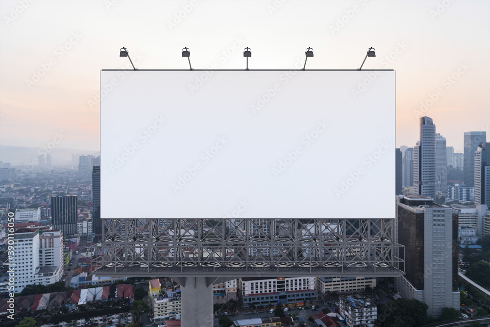 Obraz na plátně Blank white road billboard with Kuala Lumpur cityscape background at sunset