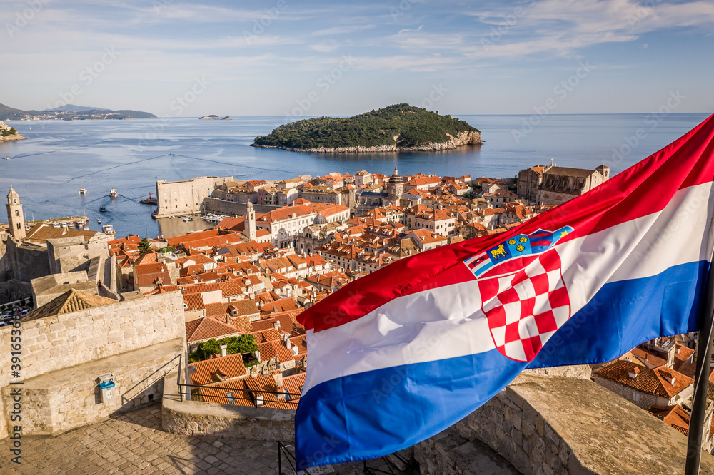 Obraz na plátně Aerial view of of the walled city of Dubrovnik, Dalmatia, Croatia