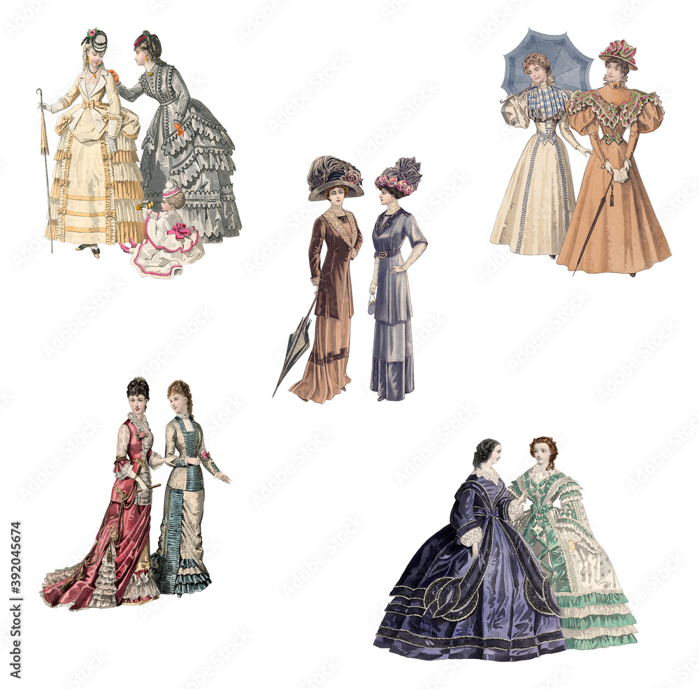 Obraz na plátně Victorian and edwardian Ladies in fashionable dresses of the time