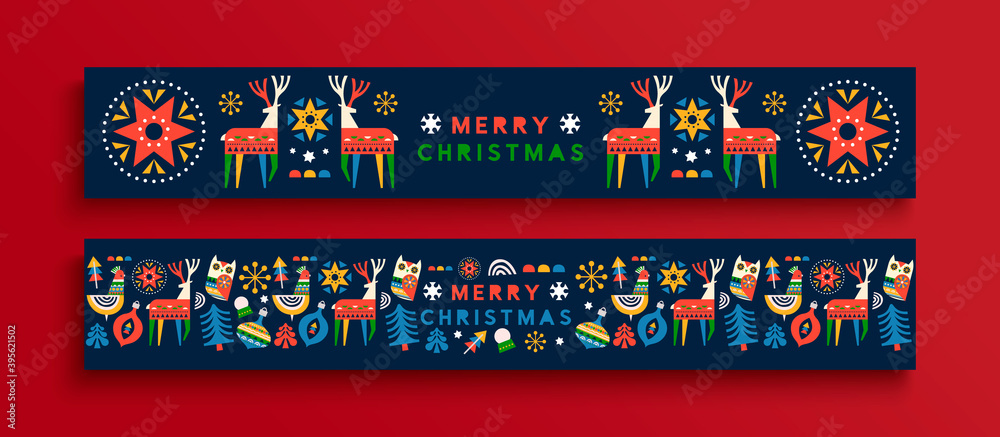 Obraz na plátně Merry Christmas folk animal banner cartoon set