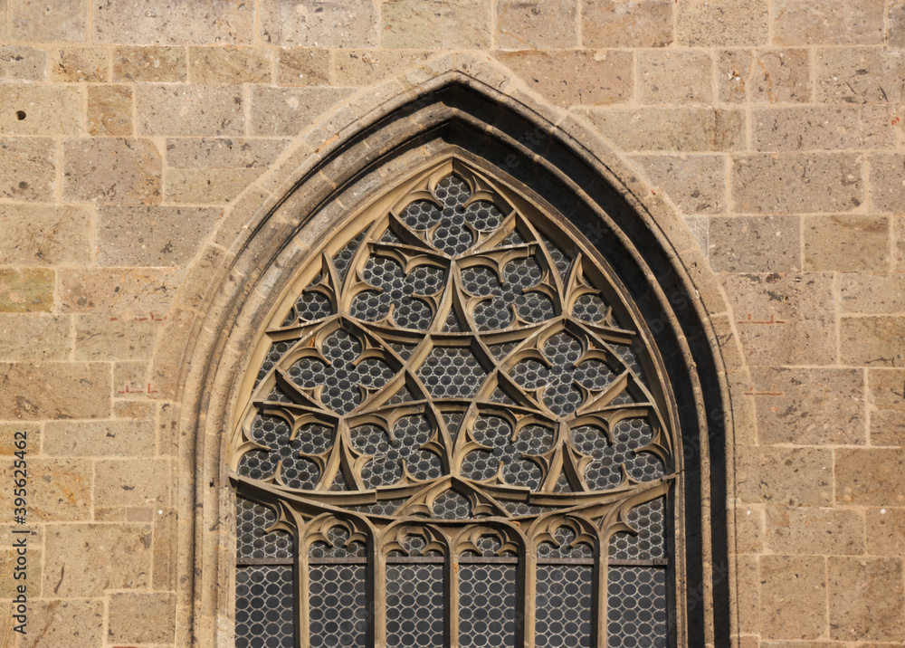 Obraz na plátně Gothic window tracery detail at the medieval church facade of St Georg in the ol