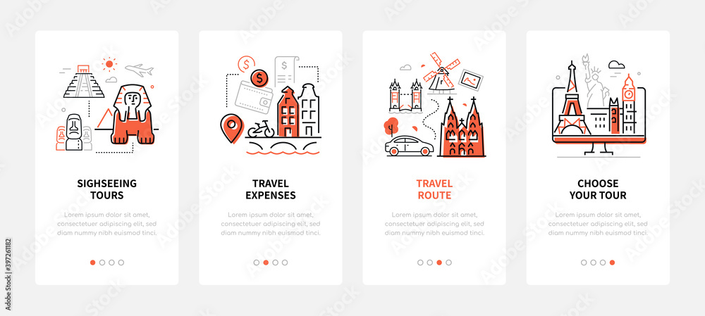Obraz na plátně Traveling and vacation - set of line design style banners