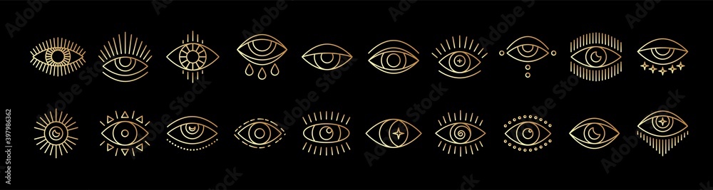 Obraz na plátně Line art icon set of evil seeing eye