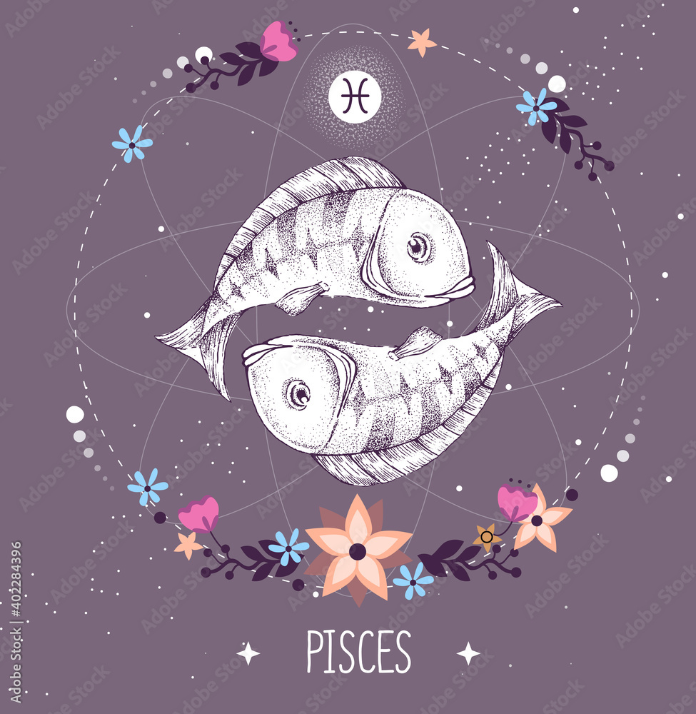 Obraz na plátně Modern magic witchcraft card with astrology Pisces zodiac sign