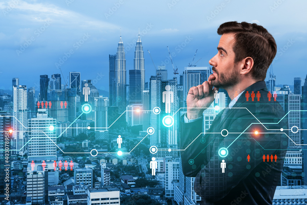 Obraz na plátně Handsome Caucasian HR director at international company is thinking about efficient strategy to recruit highly qualified specialists