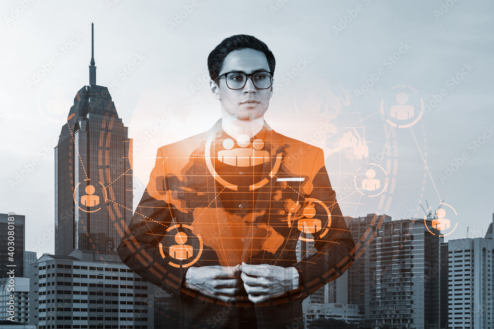 Obraz na plátně Handsome eastern HR director at international company thinking about efficient strategy to recruit highly qualified specialists