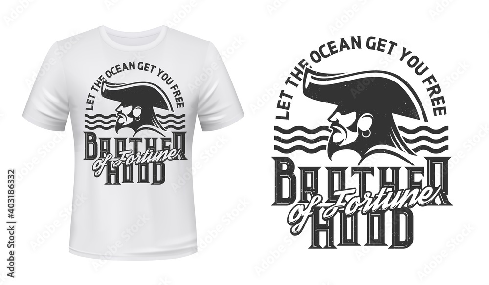 Obraz na plátně Tshirt print with pirate profile in cocked hat and sea waves