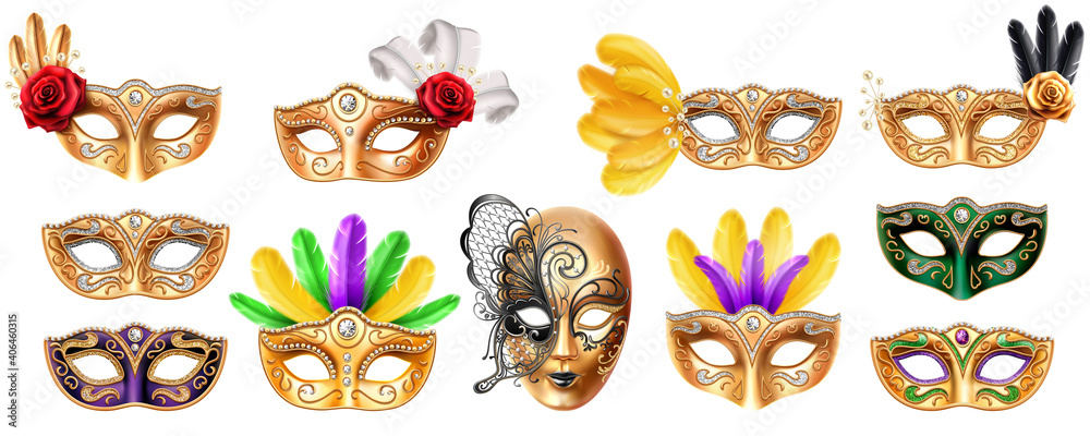 Obraz na plátně Set of isolated mask for Mardi Gras carnival