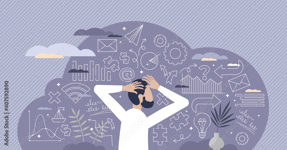 Obraz na plátně Business decisions mess and chaos as strategy confusion tiny person concept