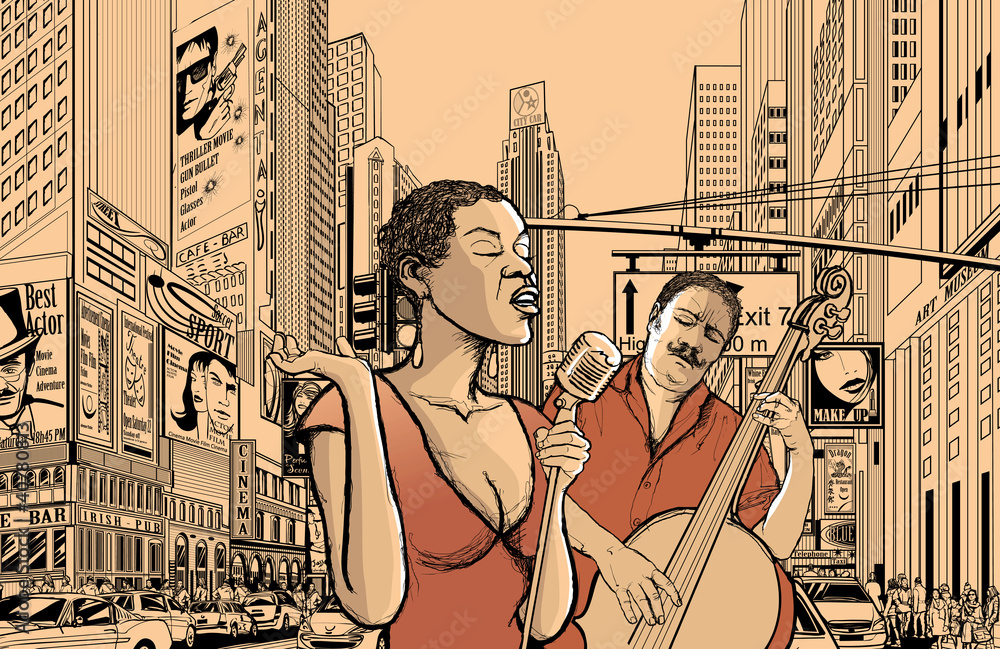 Obraz na plátně jazz singer and doublle bass