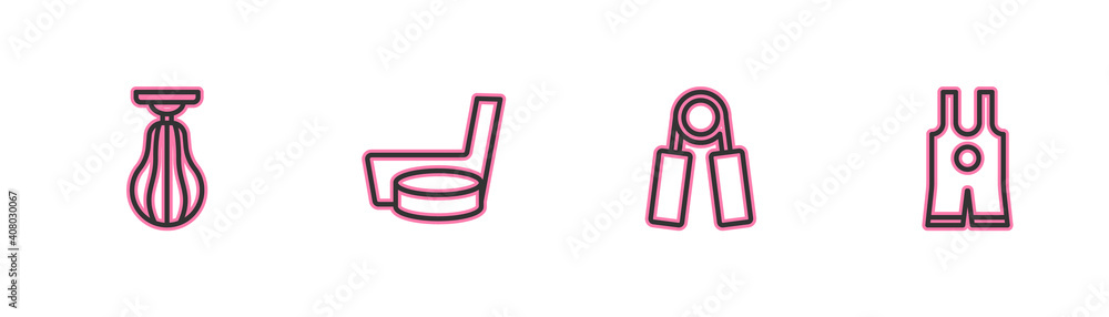 Obraz na plátně Set line Punching bag, Sport expander, Ice hockey stick puck and Wrestling singlet icon